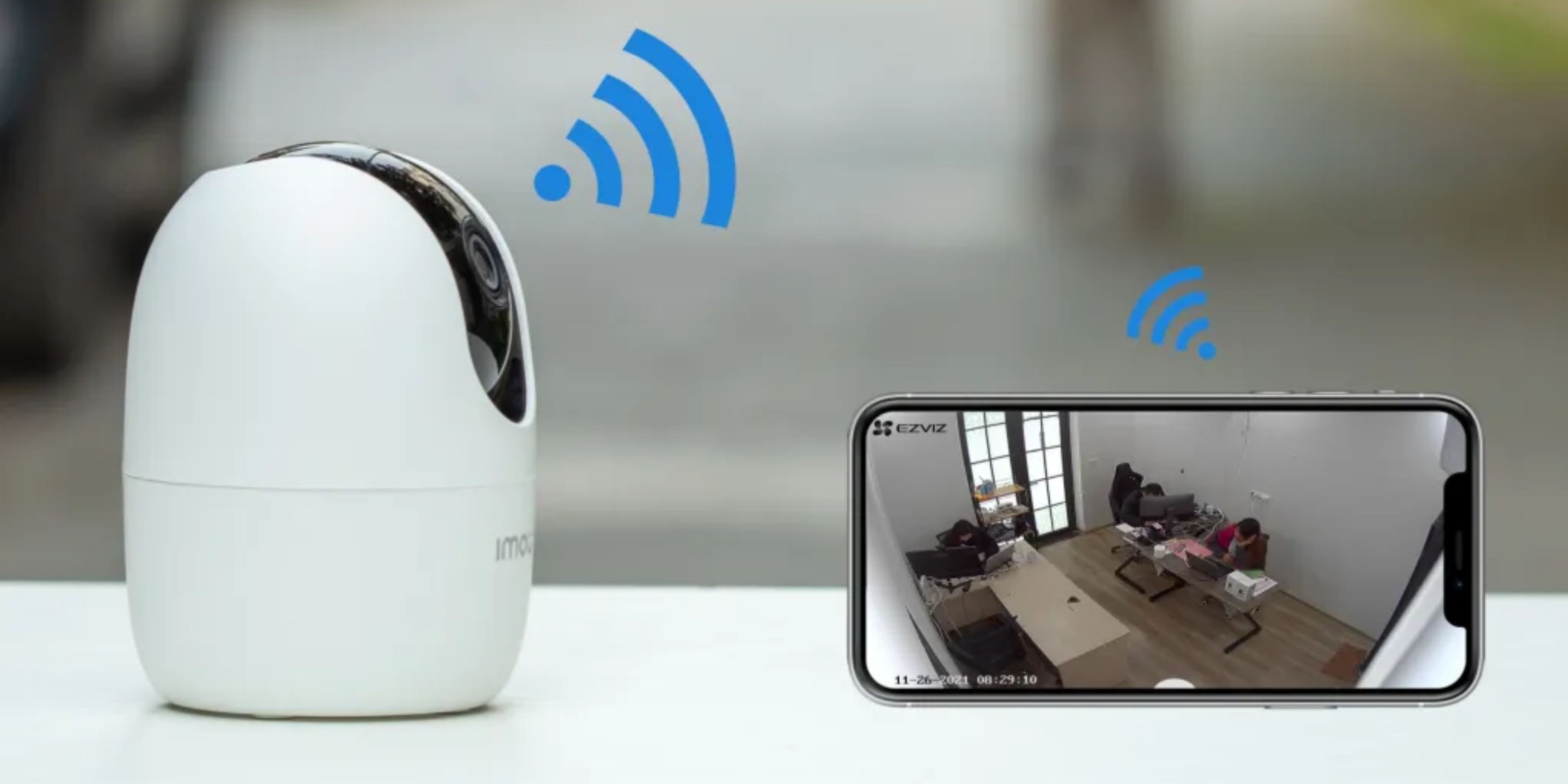 Camera có kết nối Wi-Fi, Bluetooth hoặc dây mạng LAN giúp bạn theo dõi từ xa qua điện thoại.