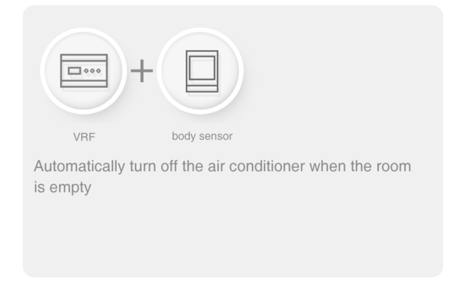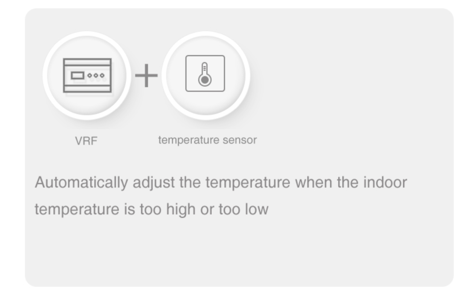 Kết hợp với cảm biến nhiệt độ, độ ẩm – thiết bị Aqara VRF T1 sẽ tự động điều chỉnh về nhiệt độ theo cảm biến. Hoặc khi bạn cảm thấy quá lạnh/ quá nóng điều hoà sẽ được lập trình sẵn về chế độ thích hợp nhất. Tất cả đều được thao tác đơn giản liên kết với nhau.