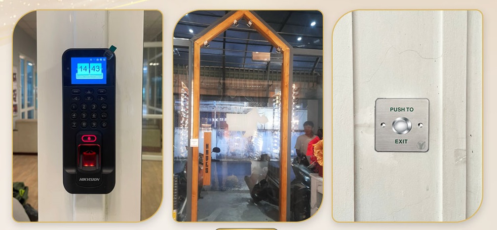 Hệ thống kiểm soát cửa bằng vân tay gồm nhiều phụ kiện, thiết bị đi kèm để kết nối với nhau tạo nên hệ thống quản lý chặt chẽ và khép kín. Có thể kết hợp vừa chấm công và kiểm soát cửa ra vào.