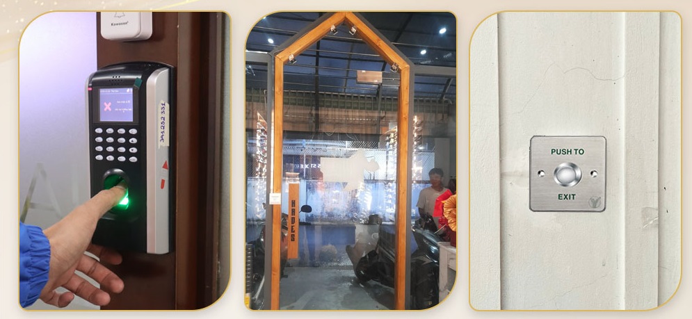 Hệ thống kiểm soát cửa bằng vân tay gồm nhiều phụ kiện, thiết bị đi kèm để kết nối với nhau tạo nên hệ thống quản lý chặt chẽ và khép kín. Có thể kết hợp vừa chấm công và kiểm soát cửa ra vào.