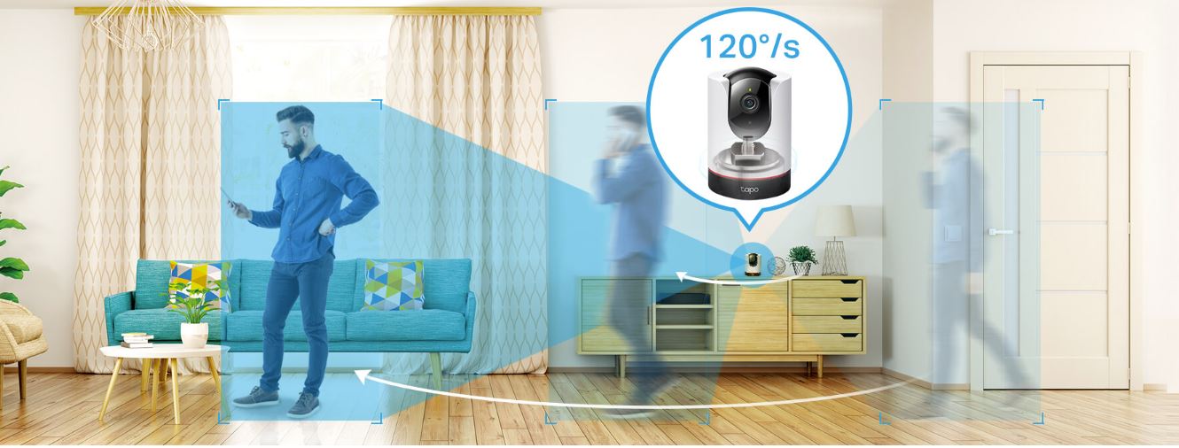 Với Tapo C225 có thể theo dõi và bán sát được những đối tượng một cách chính xác. Bên cạnh đó, còn giữ đối tượng trong tầm quan sát của camera với tốc độ quay lên đến 120độ/giây.