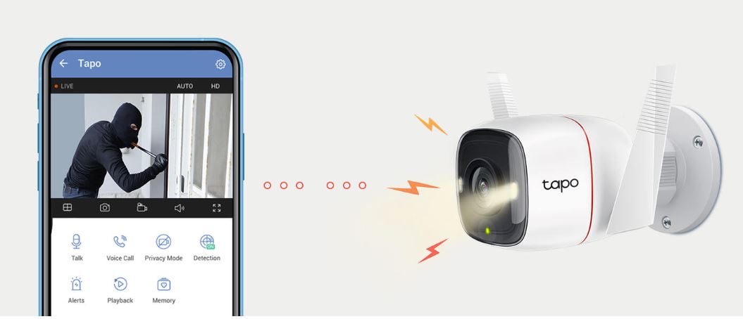 Camera Tapo C320WS được trang bị tích hợp còi báo động để giúp ngăn chặn được những đối tượng lạ xâm nhập trái phép. Còi báo động có thể hoạt động tự động với những tính năng phát hiện được chuyển động khác nhau.