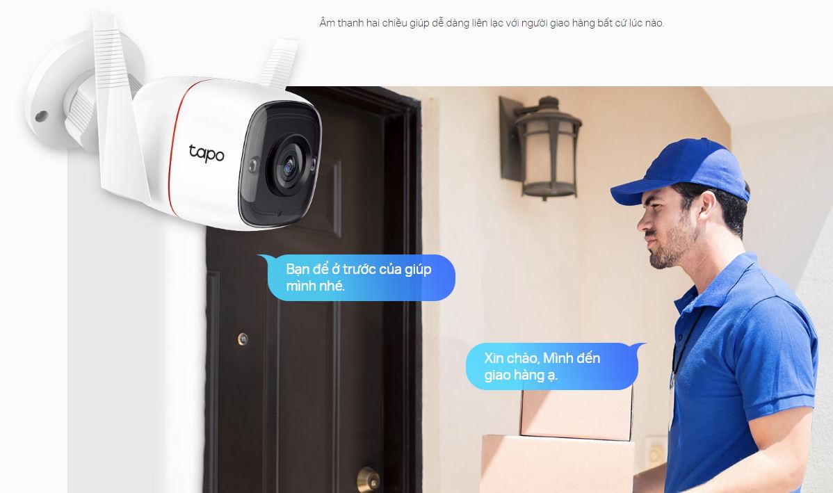 Camera an ninh Tapo C320WS âm thanh 2 chiều, giúp đàm thoại 2 chiều thông minh thuận tiện để liên lạc với những người thân trong gia đình hoặc với những người giao hàng.