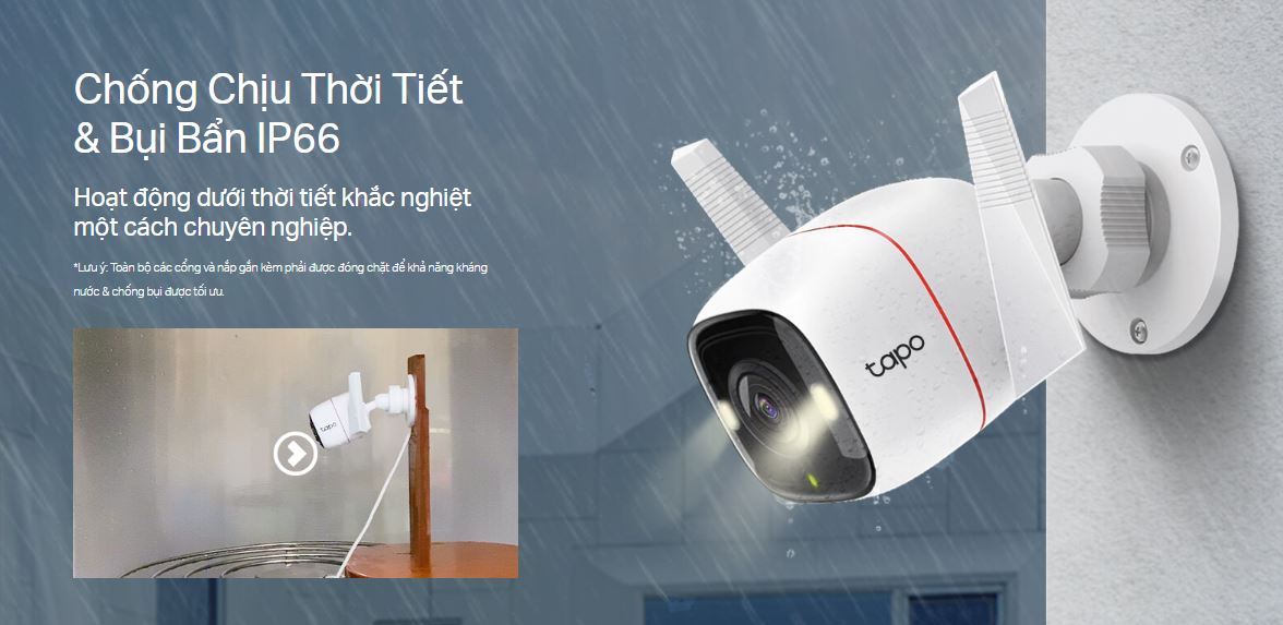 Đối với Tapo C320WS được hoạt động hiệu quả trong những thời tiết khắc nghiệt một cách chuyên nghiệp. Tapo C320WS có thể chống chịu thời tiết, bụi bẩn chuẩn IP66.