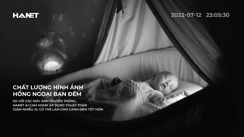 Thông thường chất lượng hình ảnh quay vào ban đêm sẽ bị giảm đáng kể, gây hiện tượng nhiễu ảnh. Các chuyển động và gương mặt chủ thể bị mờ đi khiến người dùng gặp khó khăn khi kiểm tra dữ liệu trong đoạn clip. Để loại bỏ tình trạng này, sản phẩm AI Cam Home của Hanet trang bị thêm đèn LED hồng ngoại công suất cao nhằm loại bỏ các chấm nhiễu, giúp chất lượng hình ảnh tốt hơn. Nhờ tính năng trên, người dùng có thể quan sát toàn diện mọi khung cảnh tại nhà trong thời gian 24/7.