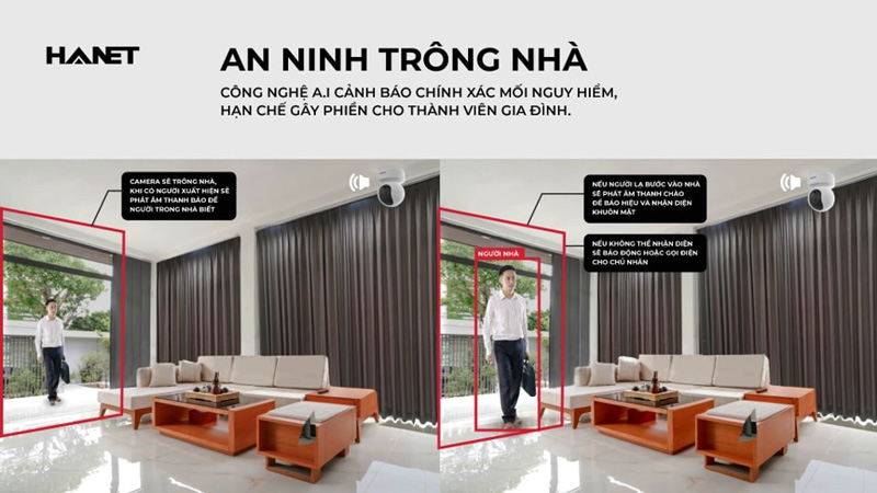 – Camera trông nhà sẽ phát âm thanh báo động khi có người lạ xuất hiện