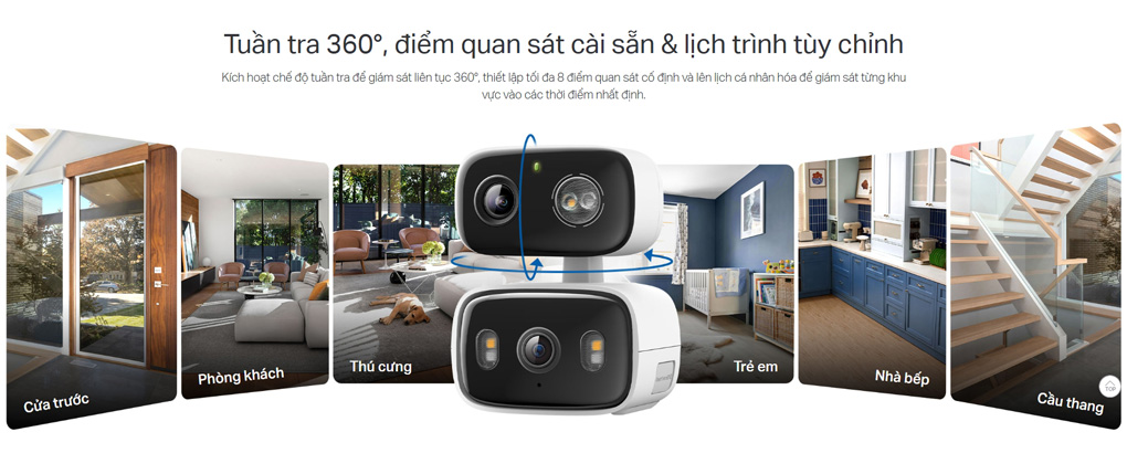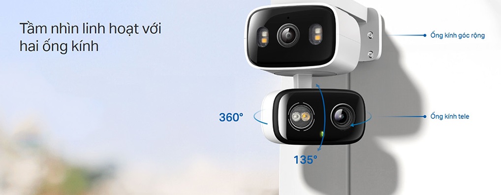 – Quay quét 360° + 2 ống kính ghi hình đồng thời