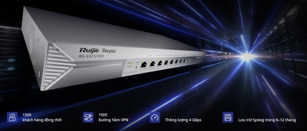 Reeye RG-EG1510XS được xây dựng để giải quyết đồng thời cả hai vấn đề: hiệu năng cao và bảo mật toàn diện. Với băng thông 4 Gbps và RAM 4GB, thiết bị xử lý mượt mà mọi tình huống tải cao.