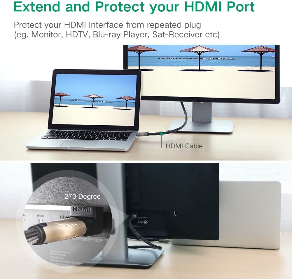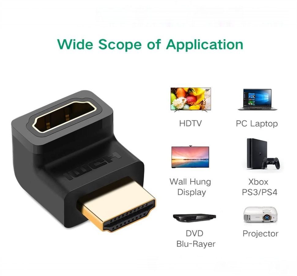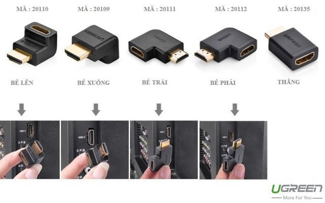 Dùng để thay đổi góc kết nối cổng HDMI.Nhỏ và tiện lợi , bọc nhựa bảo vệ tốt Dùng cho thiết bị có cổng HDMI khó cắm cáp HDMI thường, các thiết bị có cổng HDMI ở góc hẹp như tivi treo tường… Là giải pháp giúp tránh được nhiều trường hợp hư hại cáp do tivi treo tường quá chật hẹp gây gãy đứt đầu cáp .