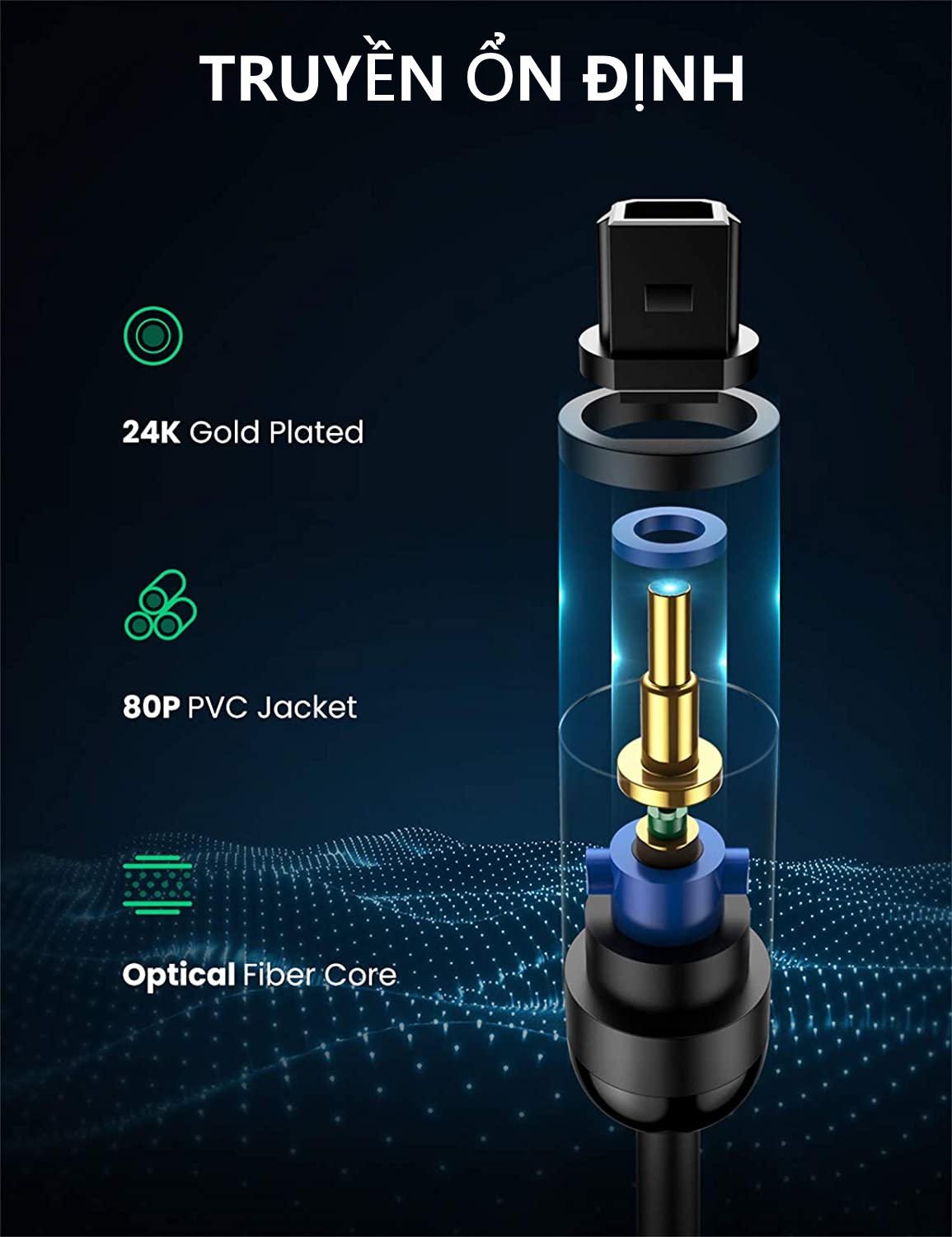 - Tính năng: Thiết kế khóa miệng vuông, thiết kế nắp bảo vệ, truyền dẫn theo giao thức S/PDIF, hỗ trợ Dolby 7.1 kênh, đầu kết nối mạ vàng, vỏ bọc thân thiện với môi trường