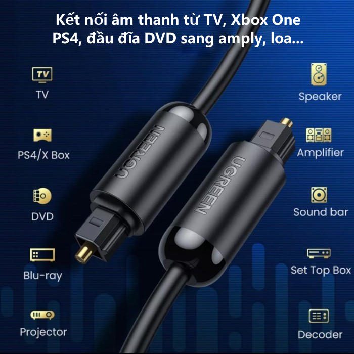 - Thiết Bị Âm Thanh Chuyên Nghiệp: Dây cáp UGREEN AV122 cũng phù hợp cho các thiết bị âm thanh chuyên nghiệp cần truyền tải âm thanh kỹ thuật số với chất lượng cao và độ tin cậy.