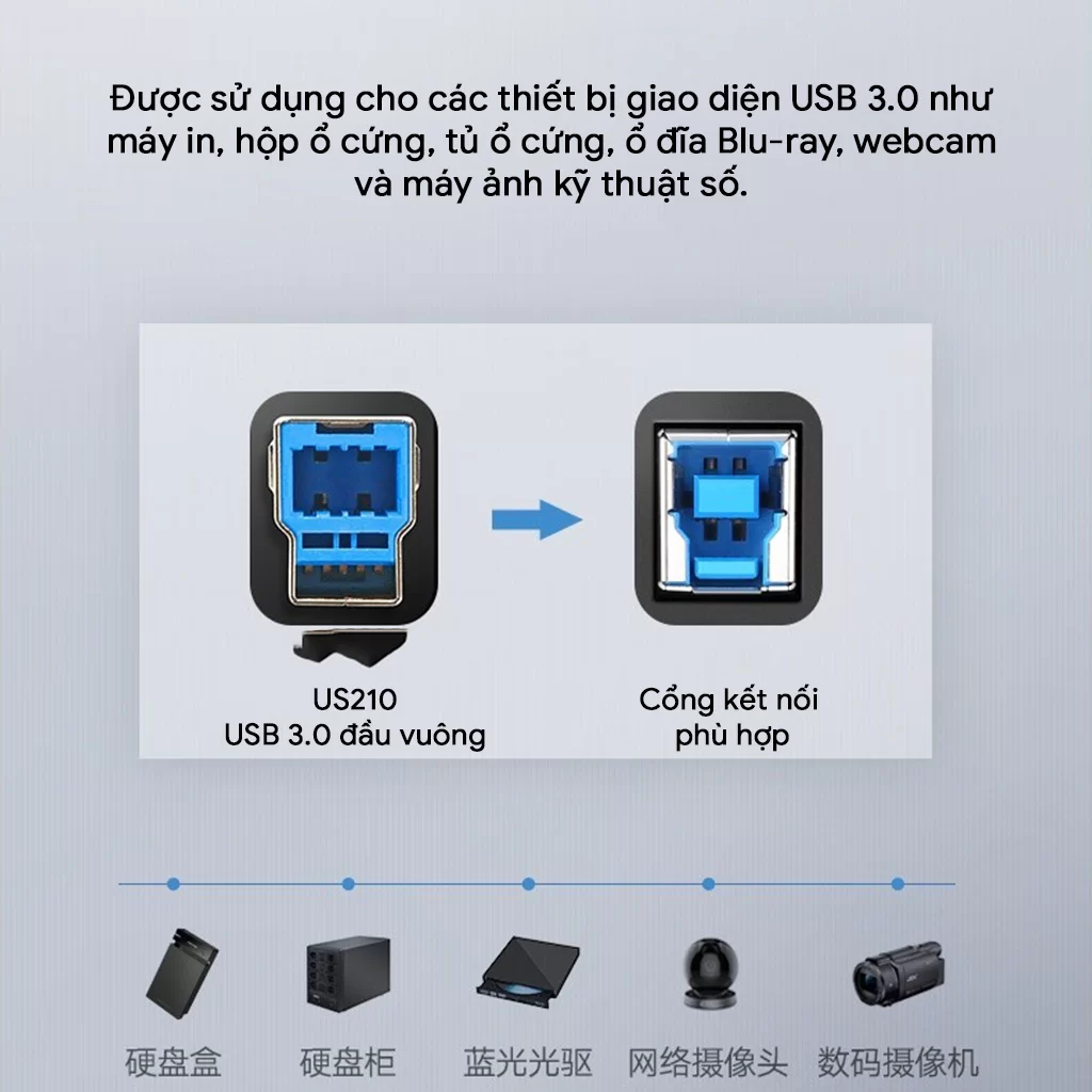 Dây máy in USB 3.0 UGREEN US210 là sản phẩm hoàn hảo cho tất cả các thiết bị giao diện hình vuông USB 3.0 của bạn. Cho dù bạn đang kết nối máy in, hộp đĩa cứng, tủ đĩa cứng, ổ đĩa Blu-ray, webcam hay máy ảnh kỹ thuật số, dây cáp này được thiết kế để mang đến hiệu suất và độ tin cậy tuyệt vời.