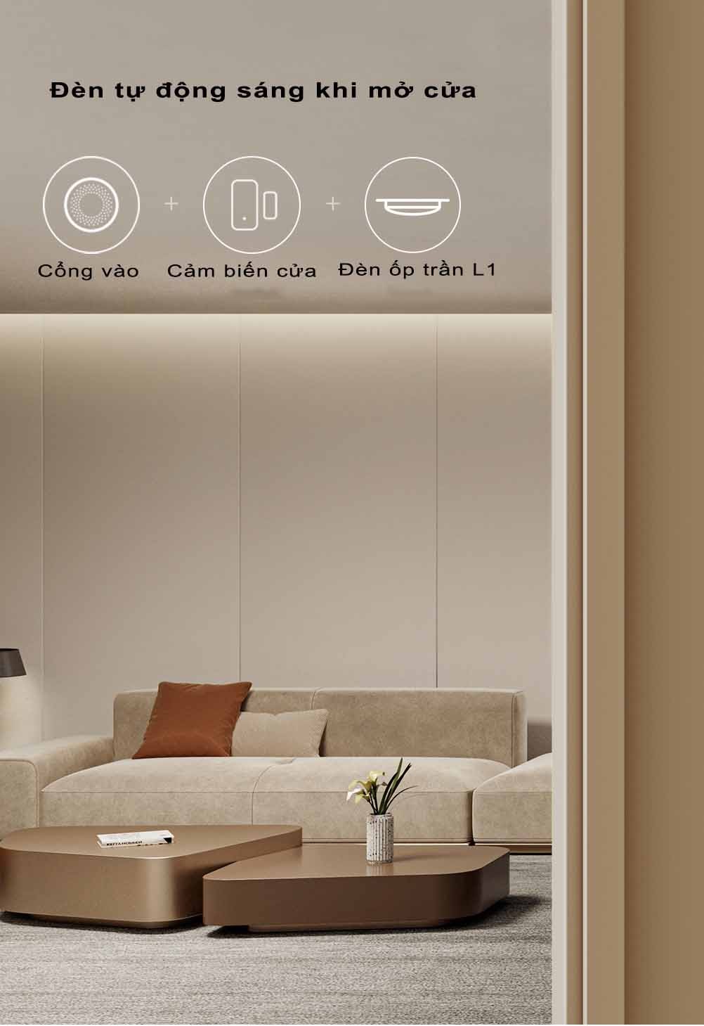 Khi liên kết với cổng vào và cảm biến cửa, đèn sẽ tự động được bật khi người dùng mở cửa.