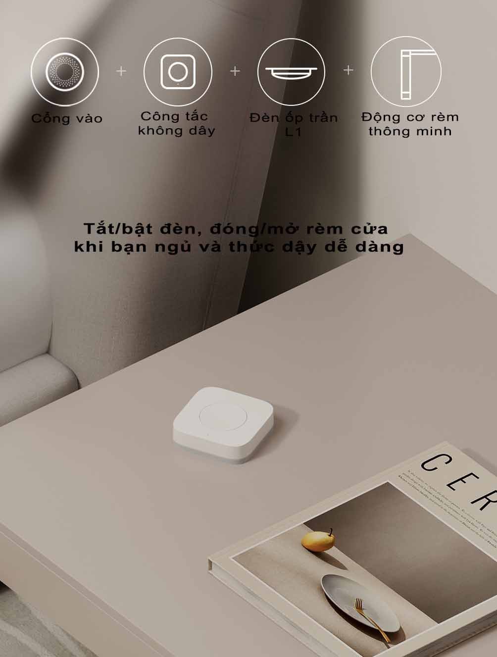 Với công tắc không dây và rèm thông minh thì đèn Aqara sẽ tự động bật/tắt hay rèm tự động đóng/mở khi bạn ngủ và thức dậy.