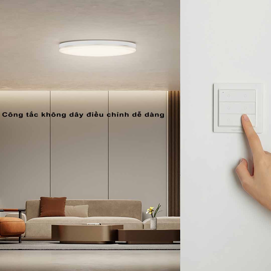 Công tắc không dây cũng được tích hợp để bạn có thể tự do lắp đặt ở vị trí mong muốn, dễ dàng chuyển đổi và điều chỉnh ánh sáng trực tiếp một cách dễ dàng.