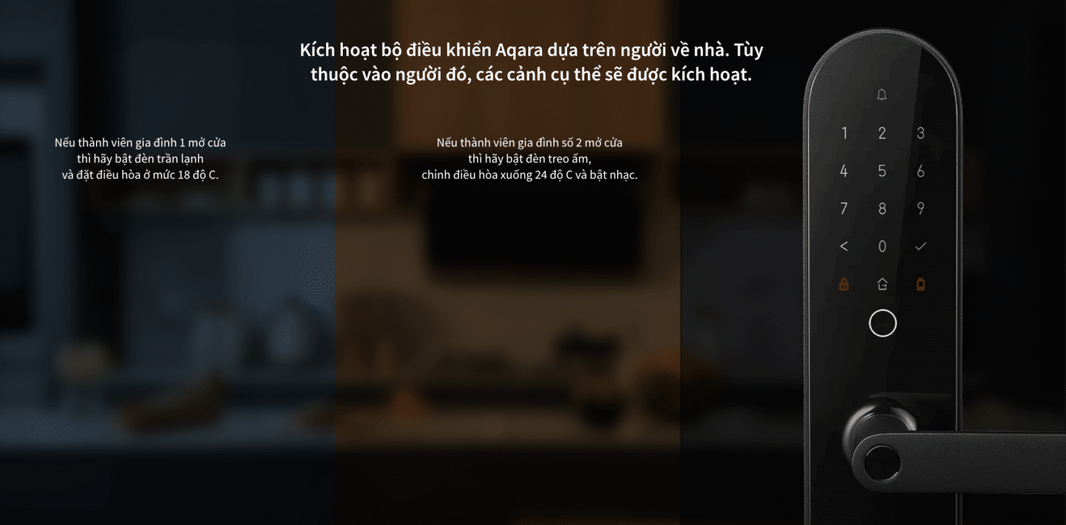 Có người về nhà → kích hoạt kịch bản sinh hoạt