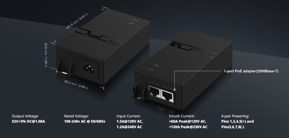– Cổng: 1 cổng 2500Base-T, PoE++ thụ động